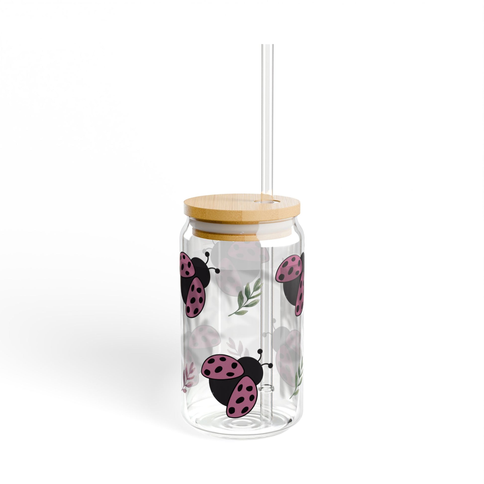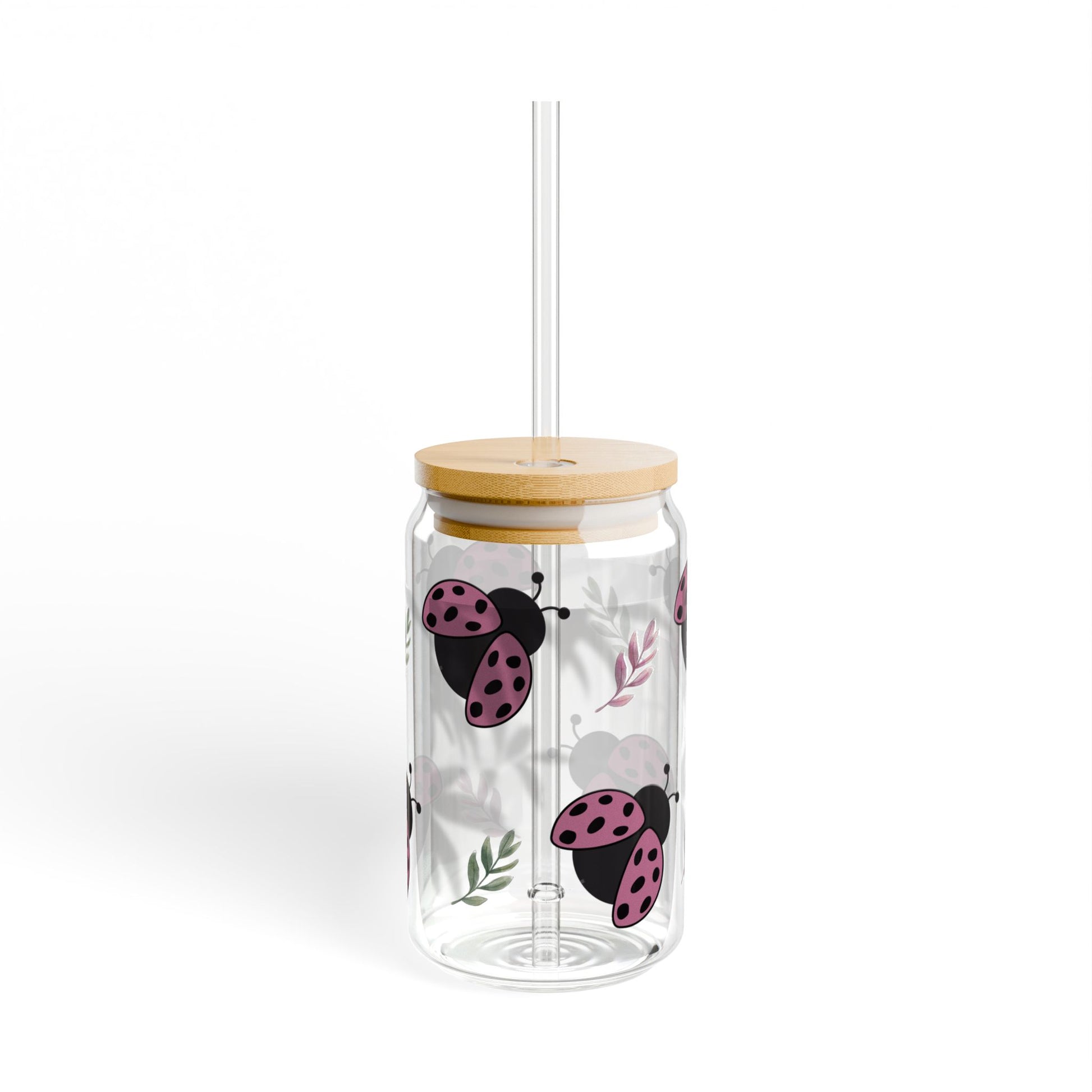 Ladybug Glass Sipper 16oz - Eco-Friendly Drinkware with Bamboo Lid
